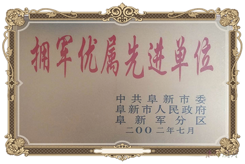 拥军优属先进单位 阜新市委.市政府 军分区2002.7