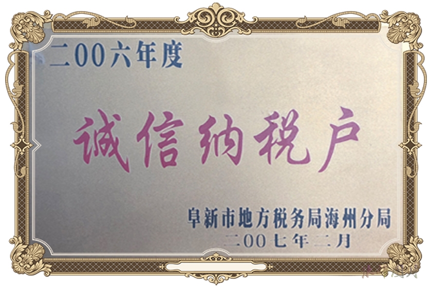 2006年度诚信纳税户 阜新市地税海州分局 2007.2
